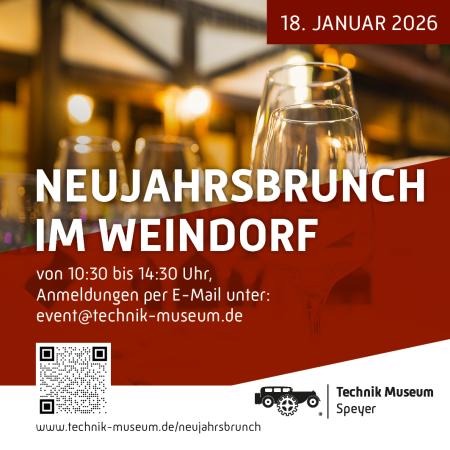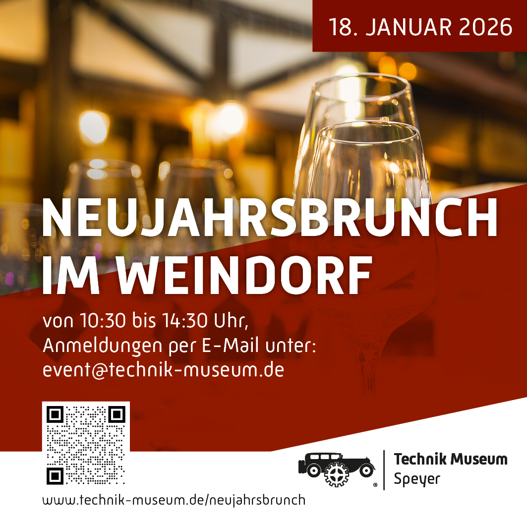 Beginnen Sie das Jahr 2026 mit einem besonderen kulinarischen Erlebnis: Unser Neujahrsbrunch findet am Sonntag, 18. Januar 2026, von 10:30 bis 14:30 Uhr im Restaurant Pfälzer Weindorf auf dem Gelände des Technik Museum Speyer statt.